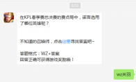 王者荣耀6月17日每日一题题目是:在KPL春季赛总决赛的赛点局中,诺言选用了哪位英雄呢?各位玩家们应该都还不知道吧。下面就跟着小编一起来看看王者荣耀6月17日每日一题的答案吧。>>>推荐阅读:《王者荣耀每日一题汇总大全》 王者荣耀6月17日每日一题 题目:在KPL春季赛总决赛的赛点局中,诺言选用了哪位英雄呢?答案:wz关羽 王者荣耀每日一题参与方式: 1、关注王者荣耀微信公众号(heromoba)2、点击右下角【王者福利】-【绑定有礼】绑定自己的游戏账号3、绑定成功后,点击【王者福利】-【每日一题】参与当日每日一题活动,答对每日一题即可参与抽奖一次,回答次数不限,所以不用怕答错哦!以上就是3DM手游网小编为你带来的王者荣耀6月17日每日一题的答案,更多王者荣耀游戏攻略,请关注3DM手游网
