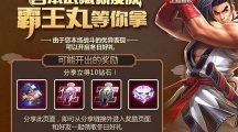 王者荣耀即将开启新的活动【霸王丸的冬日好礼】活动,顾名思义,此次活动是专门为霸王丸皮肤开启的,下面就跟着3DM小编一起来看看本次王者荣耀霸王丸的冬日好礼活动内容吧! 霸王丸的冬日好礼活动攻略 活动时间: 11月30日至12月4日活动内容: 参与排位赛和5V5匹配(仅限王者峡谷模式),对局胜利后,可获得霸王丸的冬日好礼,将活动分享至好友/群还可获得冬日好礼抽奖机会!注意事项: 每个角色每天只能获得一次分享机会和5次进链接抢好礼机会哦。 >>>>霸王丸皮肤碎片获取途径 >>>>霸王丸皮肤兑换需要多少碎片