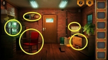 这一关的难度再次上升,可不是单靠搜集物品就能轻松过关的了,首先移动椅子这一步骤大家都想到了吗?另外,房间一侧的显示屏上分别显示了四个房间,其中有一个房间是我们曾到过的,不知道其余三个房间我们之后会不会去到,至于显示出的内容又代表了什么呢?第8关攻略 1、注意黄色圈圈所示的5处地方,等会都会用到。首先点击红色椅子获取,然后把椅子放到门左侧的位置。 2、如上图所示,我们点击查看架子上面。 3、发现一个把手,点击获取。 4、来到显示屏,屏幕显示的是监控录像,我们逐个屏幕点击。 5、此时显示的图形分别是圆形、六边形、菱形和三角形。再通过刚才的交换提示,可以得出结论顺序是三角形、菱形、六边形、圆形。 6、来到右边的抽屉,点击里面的盒子(上图红色圈圈所示)。 7、开关刚好对应显示屏的样子,将开关变为刚刚推算出的顺序三角形