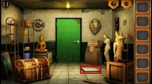 我们来到了一个奇怪的小房间,不仅有维纳斯像,还有阿努比斯神像和佛陀像,这些雕像摆在一起还真是有点奇怪呢。不过最吸引人眼球的当然是那个巨大的宝箱啦,看样子这一关的任务可不仅仅是逃出去那么简单了,作为一名冒险者哪里有见宝箱不开的道理?让我们为了宝箱努力吧。第11关攻略 1、掀开地上的地板(上图红色框框所示位置)。 2、拿到圈形齿轮。 3、在右边的架子上拿到小刀和正方形齿轮。 4、用小刀划开门右侧的纸箱子。 5、拿到螺丝刀和三角形齿轮。 6、用螺丝刀旋转开右边墙壁上的排气窗口(上图红色圈所示位置)。 7、拿到圆形齿轮。 8、将拿到的齿轮按照上图(第7张图)顺序放在地上的箱子上,顺序是:圈、三角、正方、圆,放好后拿到出现的星星齿轮(最右边)。 9、再将齿轮按照第一张提示顺序:正方、圆、三角、圈、星,放置在箱子上。 1