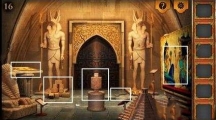 第十六关所在的房间应该是博物馆的埃及展区了,金字塔,狮身人面像无不透露出浓浓的异域风情,在这充满异国情调的神秘房间中,是不是隐藏着什么不同以往的谜题呢?给大家一个提示吧,要注意搜查胡狼雕像哦!第16关攻略 1、本关要注意下图中的几个位置,首先将石像脚下的砖块点击移开。 2、接下来查看另一个石像脚下,拾取撬棍和一个图案砖块。 3、点击查看石像左侧的图画,需要先将其中五块移动到正确的位置,最后将刚刚拾取的砖块放到左下角,完成拼图。 4、回到主画面,可以看到门已经开了一条缝,但是还无法通过。使用撬棍将左侧石像撬起,点击查看石像下面。 5、底下压着一张图画提示。 6、查看右侧的大幅壁画,点击提示中正中心的方位。 7、出现一个简单的小游戏,将砖块移开,最终将物品拿出来即可。 8、回到主画面,点击门前的机关,将刚刚拾取的物