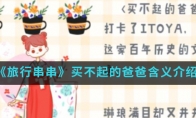 在旅行串串手游中买不起的爸爸是什么意思呢?游戏中小伙伴发现在打卡百年历史文具店的时候出现了一个买不起的爸爸,不是很理解是什么意思,那么想知道买不起的爸爸含义介绍的就跟随小编一起来看看吧。买不起的爸爸含义介绍:这是指某件东西价格过高以至于自己实在买不起,便已一种亲切的称呼称它为“爸爸”。以上就是小编整列的旅行串串买不起的爸爸含义介绍,想知道更多相关资讯攻略的请关注3DM手游网。