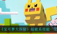 宝可梦大探险已经正式公测了,很多小伙伴都很想知道在宝可梦大探险中都有什么超能系技能,今天小编给大家带来了《宝可梦大探险》超能系技能一览,感兴趣的小伙伴一起来看看吧,希望可以帮助到大家。《宝可梦大探险》超能系技能一览1、辅助技能瞬间失忆 CD8s超能系加伤害和不下降能力的技能屏障 CD5s超能系加防御的技能瑜伽姿势 CD5s超能系加伤害的技能2、攻击技能精神强念 ATK 450 CD7s超能系扛把子技能,有追踪效果,一定的击退效果,最后还能拐弯精神利刃 ATK 450 CD5s只有胡地和超梦能学会的技能,有位移效果精神击破 ATK 275 CD5s超能系潮旋,火焰漩涡意念头槌 ATK 275 CD5s以上就是小编整理的关于《宝可梦大探险》超能系技能一览的全部内容,更多游戏攻略请持续关注3DM手游网!