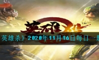 小编给大家带来了英雄杀的微信每日一题更新,今天的问题是“小师妹推荐任桓之的辅印选择什么呢?”,输入正确答案就可以获得微信公众号的奖励,下面小编给大家带来《英雄杀》2020年11月17日每日一题答案,感兴趣的小伙伴一起来看看吧。 《英雄杀》2020年11月17日每日一题一、问题 小师妹推荐任桓之的辅印选择什么呢?二、答案 yx杀之贪 (yx加答案,中间不能有空格)三、领取方式 进入英雄杀微信公众号,输入答案就可以去领取奖励了。以上就是小编给大家带来的《英雄杀》2020年11月17日微信每日一题答案,更多手游攻略请关注3DM手游网!