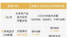 今日头条是一款为你实时推送新闻热点的APP,对于很多喜欢关注新闻热点的小伙伴来说,今日头条是一款很不错的软件。最近今日头条也上线了一个流量卡,名为头条关心卡。那么具体的收费标准是什么样的呢?下面请看小编带来的介绍。 收费标准: 从上图可知今日头条流量卡9元每月,头条系列产品省内定向流量全免。1元500M省内流量(当日有效、自动续订,不用不收费) 赠来电显示189邮箱,大陆境内接听免费,国内流量0.1每mb,国内通话01每分钟,国内短信0.1元每条;以上则是小编为大家介绍的收费标准,希望对大家有所帮助。