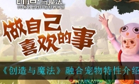 以上就是小编整理的关于攻略的全部内容,更多游戏攻略请持续关注3DM手游网!在创造与魔法中融合宠物特性是在宠物合成后产生的特性,很多小伙伴都很想知道这个融合宠物特性怎么样,今天小编给大家带来了《创造与魔法》融合宠物特性介绍,感兴趣的小伙伴一起来看看吧,希望可以帮助到大家。《创造与魔法》融合宠物特性介绍蝠龙系擅长远程攻击,利用自身的毒素来击败敌人巨人系宠物适合当肉盾,它们血量比较多,可以作为抗打的盾牌。不过,不管是攻击型还是辅助型的宠物,都能让我们的战斗更加轻松。狼人系它的合成所需宠物倒是比较简单,就只是各种各样的狼,从普通的狼到狼王,除了雪原狼以外的每一只狼都需要参与进来,才能得到最后的巫祝。狼人与蝠龙一样,也是属于远程攻击类型的宠物,不过它的法力比较神奇,在没有合成的时候,狼王的攻击性似乎比合成后的狼人还要厉害