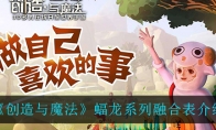 在创造与魔法中有很多小伙伴都很想知道游戏中蝠龙都可以融合成什么,今天小编给大家带来了《创造与魔法》蝠龙系列融合表介绍,感兴趣的小伙伴一起来看看吧,希望可以帮助到大家。 《创造与魔法》蝠龙系列融合表介绍宠物(左) 宠物(右) 合成宠物 所需融合石 饲料10级绿蜥蜴 10级绿蜥蜴 1级灰蝠龙 1 饲喂肉=绿蜥蜴(6包)15级灰蝠龙 20级蓝蜥蜴 1级红蝠龙 2 饲喂肉+蓝蘑菇=蓝蜥蜴(6包)40级红蝠龙 30级血蜥蜴 1级蓝蝠龙 4 优质饲喂肉=血蜥蜴(9包)50级蓝蝠龙 50级毒液 &nbs