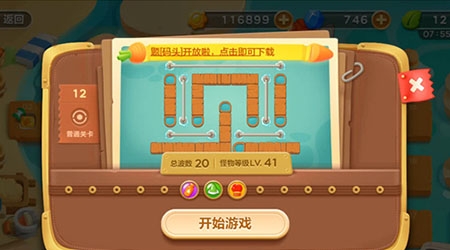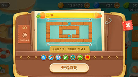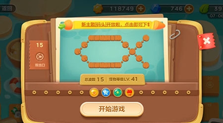 保卫萝卜3码头第25关怎么过?本关只有一波小怪,这种的大家之前都见过了吧,难度不大,前期会有金币让大家建造炮塔,然后清理障碍物继续建炮塔,总之火力足够就OK了。 只要善用减速塔及暂停键,难度不大。 1、如图,按图上布置,然后开局。雪球在出口处建一个,其他位置可建可不建,不建的等以后有空位再建也一样。这里减速塔选雪球,是因为雪球减速效果比蘑菇好。风扇攻击也比飞机好。 2、前一小波基本没什么难度,要注意的是观察地图,一旦有空位,立刻补上风扇或者雪球。另外,雪球只要确保怪物能全程冻住即可,不必多建。总的来说,难度不大。下图为最终通关阵容: