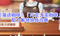 猫语咖啡巧克力浓咖啡配方解锁挑战怎么玩?很多小伙伴不知道猫语咖啡巧克力浓咖啡配方解锁挑战怎么玩。《猫语咖啡》是一个模拟经营咖啡店的手游。这是一个以猫咪为主题的咖啡店,餐厅即将倒闭,快点发动你的小脑袋想一想怎么拯救餐厅吧,游戏玩法新颖独特,画面精致高清。下面小编给大家带来《猫语咖啡》「巧克力浓咖啡」配方解锁挑战攻略,希望能帮助到小伙伴们哦。小编推荐阅读:《猫语咖啡》解锁挑战攻略汇总 《猫语咖啡》「巧克力浓咖啡」配方解锁挑战攻略视频攻略(转载于哔哩哔哩:缠屎官)以上是《猫语咖啡》「巧克力浓咖啡」配方解锁挑战攻略的全部内容了,更多精彩攻略,尽在3DM手游网,不知道大家喜欢吗,记得点击收藏3DM手游网。