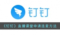 在钉钉直播课堂上课的过程中,同学们可以向老师申请连线,从而连麦进行交流。那么钉钉课堂怎么连麦呢?下面小编就为大家带来了钉钉直播课堂申请连麦的方法介绍,还不知道的小伙伴可以来一起了解下哦!钉钉课堂怎么连麦?1、进入钉钉直播课堂后,点击右下角的申请连线。2、点击发送申请,等老师同意连麦申请后,即可连麦。以上就是小编带来的钉钉课堂怎么连麦?钉钉直播课堂申请连麦方法,更多相关资讯教程,请关注3DM手游网。
