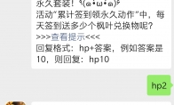 和平精英10月11日每日一题题目是:活动“累计签到领永久动作”中每天签到送多少个枫叶兑换物?各位玩家们应该都还不知道吧。下面就跟着小编一起来看看和平精英10月11日每日一题的答案吧。小编推荐:《和平精英2019年每日一题答案汇总》 和平精英10月11日每日一题 题目:活动“累计签到领永久动作”中每天签到送多少个枫叶兑换物? 和平精英每日一题参与方式: 1、关注和平精英微信公众号2、点击右下角【赛季福利】-【绑定有礼】绑定自己的游戏账号3、绑定成功后,点击【赛季福利】-【每日一题】参与当日每日一题活动,答对每日一题即可参与抽奖一次,回答次数不限,所以不用怕答错哦!以上就是3DM手游网小编为你带来的和平精英10月11日每日一题的答案,更多和平精英游戏攻略,请关注3DM手游网和平精英专区,小编将持续为你更新。