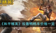 和平精英拉轰鸭鸭车多少钱?和平精英是又更新了新的内容,其中是更新的新的载具皮肤拉轰鸭鸭车,其中的外表是吸引了很多玩家的注意,那么下面小编就开始为玩家们带来拉轰鸭鸭车价格一览,想知道的小伙伴快来一起看看吧。《和平精英》拉轰鸭鸭车价格一览拉轰鸭鸭车价格:应该需要1个提车币去兑换。1、光子自研的品类,多数都属于卡通风格,所以拉轰鸭鸭车也是这样的造型;2、此次出现在大转盘里的新车皮,被光子命名为拉轰鸭鸭车;3、只有进入游戏之内的实际装备才能看到真实的表现;4、完美诠释经典IP小黄鸭的元素,不仅颜色鲜艳,而且其造型是非常的吸引玩家的;5、但是这个皮肤的载具是三蹦子,非常的难骑,属于登场概率极低的载具类型。总结这款皮肤拉轰鸭鸭车的建模还有颜色都是非常不错的,但是其载具确是不尽人意,因为是比较难骑,所以很少有玩家会使用它,所