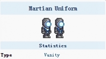 《泰拉瑞亚》手机版中的火星制服穿上之后总感觉自己和那群火星人小怪没什么区别,不过毕竟也是一套时装,虽然说外观确实不咋地,不过好歹也算是一间收藏品,有兴趣的话就刷一套吧。火星制服 id:2806/2807/2808品质:白色售价:3金 火星制服是时装套装,由头盔、衣服和裤子构成。 获取 火星人入侵事件中的怪物概率掉落。