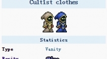 《泰拉瑞亚》手机版中的异教徒服装一共有两套,除了颜色的区分以外,购买他们的时机也是有区别的,白天和夜晚分别只能买到对应太阳和月亮的那一套,非常有新意的玩法,通过购买就可以获得了。异教徒服装 id:2856/2857/2858/2859品质:蓝色售价:2金 异教徒服装是时装套装,由面具和长袍构成,总有两套,太阳异教徒服装和月亮异教徒服装。 获取 打败狂热信徒之后,找裁缝花10金购买,太阳套装只能在白天购买,月亮套装只能在晚上购买。