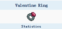 《泰拉瑞亚》手机版中的情人节戒指是专属手机版的饰品哦,获取的话一定要在情人节期间才能够购买得到。它对于生命恢复的加成还是比较有用的。比初始的恢复速度增加了不少。情人节戒指 ID:1917/5051价格:出售20银品质:白色情人节戒指作用:把它送给特别的人。 情人节戒指是移动版限定的饰品,它可以在放在地上再捡起来或送给别人后,增加持有者50%的生命恢复和些许的跳跃高度。情人节戒指获得方法:在商人处花费1金购买,情人节事件期间。备注 戒指的跳跃高度增加效果不会与闪亮红气球、云气球的效果叠加。测试戒指回血效果,400血的角色死后没有戒指的加成下70秒恢复完,有戒指的话50秒。提示 情人节戒指在游戏前期非常有用,可以作为药品的替代品让角色快速的恢复血量。增加的跳跃高度也可以为前期的探索增加更多的机动性。