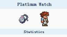 《泰拉瑞亚》手机版中的怀表对于冒险是非常重要的一件道具,许多材料以及怪物的来源都和时间有关,有了怀表我们就能够合理的规划自己的游戏时间。这对于效率的提升是很有帮助的。怀表 ID:709价格:30银铜怀表作用:在游戏界面上显示游戏中的时间;泰拉瑞亚的游戏时间请记住以下4个时间点;Dawn 黎明 4:30 AMNoon 正午 12:00 PMDusk 黄昏 7:30 PMMidnight 午夜 12:00 AM怀表还有五种其他款式如下Gold Watch 金怀表 (10金锭+1铁链 是制作1秒定时器的材料)Copper Watch 铜怀表 (10铜锭+1铁链 是制作5秒定时器的材料)Silver Watch 银怀表 (10银锭+1铁链 是制作3秒定时器的材料)Tin Watch 锡怀表 (10
