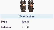 《泰拉瑞亚》手机版中的忍者套装相信大家看名字都知道了,肯定是加强投掷武器的,毕竟各种飞镖手里剑都是忍者的经典武器,不过缺点就是防御力加成非常低,如果你对自己的操作有信心,那么这套装备还是不错的。忍者套装 忍者套有三个部位:忍者头套,忍者衬衫,忍者裤子。在手机版本 ,它提供了非常少的防守 ,但增加速度和伤害投掷武器 。全套装备补全后有残影效果,类似于死灵和钴盔甲套装ID:256、257、258 套装奖励:33%的几率不消耗投掷物。头盔 2防御—— 15%投掷速度—— 1上限胸甲 4防御—— 15%投掷伤害—— 1上限护腿 3防御—— 10%投掷暴击几率—— 1上限获得方式: 击杀史莱姆王有1/3的机会获得,每次获得一件,或者在专家模式中宝箱中获得。在移动版本中,也可以通过天兔获得,不过几率只有3%。