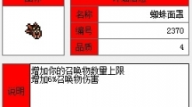 《泰拉瑞亚》手机版中的蜘蛛套装是一套非常弱的套装。不仅防御力感人,而且它的加成也并不理想,当然比起初阶套装还是强了不好,但是合同级别的比有很逊色。所以不是很推荐大家制作这一套。蜘蛛套装 地位和蜜蜂套一样尴尬,不建议使用。除非想挑战一下另类的开荒,可以用这一套+火精灵法杖开始你的肉山后之旅。ID:2370、2371、2372 套装效果:20防御,+30%召唤伤害(18%分件+12%套装加成),+3召唤物数量上限头盔 5防御——+6%召唤伤害——+1上限胸甲 8防御——+6%召唤伤害——+1上限护腿 7防御——+6%召唤伤害——+1上限获得方式: 用36个 蜘蛛毒牙 Spider Fang在铁砧/铅砧旁合成头盔——8个毒牙胸甲——16个毒牙护腿——12个毒牙