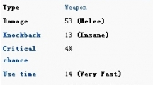 《泰拉瑞亚》手机版里的叶绿帕提森钩刃作为制作获得的长矛,算是比较好的了。伤害以及特效都很不错,对于一些特定的怪物来说很有用。有条件可以入手一把,很实用。叶绿帕提森钩刃 ID:1228近战伤害:49暴击:4%速度:快速击退:强品质:7价值:3金60银挥动时会带出一片孢子毒云,打石巨人还是可以的,所有普通矿石制作的长矛中他是最好的,比钛金三叉戟还要高9点伤害; 孢子毒云在矛达到最远时在矛尖发射出,距离不远但同样可以穿透方块或穿刺敌人 获得方法: 12叶绿锭(Chlorophyte Bar)在山铜砧(Orichalcum Anvil)/秘银砧( Mythril Anvil)处合成,并不是很难获得,打完石巨人就没什么用了。 武器评价: 1、敌人只有在一定的距离内才能被孢子云所攻击。2、算上孢子云,它的攻击范围是矛中第二