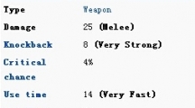 《泰拉瑞亚》手机版中的水果蛋糕旋刃作为一款节日才会出现的武器,其实使用起来还是不错的,击退以及伤害都非常不错。所以到了圣诞节别错过了,小怪刷起来!水果蛋糕旋刃 ID:1918武器类型(Type):回旋镖伤害(Damage):14(中下)击退(Knockback):8(很强)稀有度(Rarity):蓝色使用时间(Use Time):14(非常快)飞行速度(Velocity):11是否连击:否武器评价:过渡武器尽管在外观上与荆棘旋刃(Thorn Chakram)相似,但这把武器并不能在碰到物块时弹开,它的外观没有名字听起来那么可怕最高前缀:超神 获得方法 在圣诞节期间打开礼物(Present)0.65%几率获得,礼物则是在圣诞节期间由任何敌人7.69% (1/13)几率掉落武器获取成本:中量RP武器获取难度:简单售