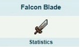 《泰拉瑞亚》手机版中的猎鹰之刃是大家好评度很高的一把武器,主要是获取容易而且实用度非常高,小编建议大家如果有空的话可以专门去弄一把猎鹰之刃,绝对对得起你花的时间。猎鹰之刃 ID:2608 类型:宽刃剑伤害:25(中上)击退:6(中上)稀有度:红色速度:14(非常快)是否连击:否实用度:实用最高前缀:传说获得方法: 钓鱼钓得成本:鱼竿×1、一些鱼饵、一个池塘、中量RP,喝点板条箱药水(Crate Potion)可以增加获得的几率合成板条箱药剂中最独特的就是“琥珀”琥珀只能用泥砂块或雪砂块在精炼器(Extractinator)中使用1.05%几率获得不可合成武器评价: 比血腥屠戮者更强,同时击退较高。其他:不用解释的人品武器