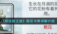 在阿比斯之旅手游中欺压卡牌怎么样呢?这长存在虚弱时是一张白嫖卡,但毕竟对卡组或是秘宝有要求,作用条件不简单,那么想知道具体介绍的就一起来看看吧。欺压卡牌详解介绍:欺压★☆☆☆☆~★☆☆☆☆介绍:低[耗],[伤害]X6,若敌方[虚弱]则下个回合[能量]+1(虚弱:敌方造成的伤害降低)强化:低[耗],[伤害]X?,若敌方[虚弱]则下个回合[能量]+1解释:buff流或者拥有秘宝时选择,并且能造成6点伤害,存在虚弱时是一张白嫖卡,但毕竟对卡组或是秘宝有要求,作用条件不简单,何况buff流卡牌罕见,成型慢,大多时候,宁可不选择这张卡,让对战中更快抓到核心手牌更好。以上就是小编整理的《阿比斯之旅》欺压卡牌详解介绍,想知道更多相关资讯攻略的请关注3DM手游网。