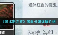 在阿比斯之旅手游中嗜血卡牌怎么样呢?游戏中的卡牌有很多嗜血卡牌就是其中之一,嗜血就是一个通体红色的魔鬼草,那么想知道嗜血卡牌详解介绍的就跟随小编一起来看看吧。嗜血卡牌详解介绍:嗜血★★☆☆☆~★★★☆☆介绍:中[耗],自伤[体力]X6,本场战斗[力量]+1(力量:对自身造成的直接伤害进行增幅)强化:低[耗],自伤[体力]X6,本场战斗[力量]+1(力量:对自身造成的输出伤害进行增幅)解释:buff永远是越多越好的,高伤流或者buff流考虑,不过建议其他流派拿的时候慎拿,不需要的buff卡拿了可以让你半天拿不到自己需要的卡,2点能量不是个小数目,他还自残6血,未强化时这张卡存在一定的不足,强化后仍然是一张不错的buff卡。以上就是小编整理的《阿比斯之旅》嗜血卡牌详解介绍,想知道更多相关资讯攻略的请关注3DM手游网