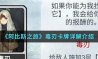 在阿比斯之旅手游中毒刃卡牌怎么样呢?毒刃是游戏中的卡牌之一,如果你能为我找到它,我会给你丰厚的报酬,那么想知道毒刃卡牌详解的就一起来看看吧。毒刃卡牌详解介绍:毒刃★★☆☆☆~★★★☆☆介绍:低[耗],[伤害]X3,[中毒]X3强化:低[耗],[伤害]X?,[中毒]X?解释:毒卡流的选择,也可以在输出流卡组中存在,能一边捅人一边上毒真爽,特别是和[毒刃]卡牌配合,效果极佳。以上就是小编整理的《阿比斯之旅》毒刃卡牌详解介绍,想知道更多相关资讯攻略的请关注3DM手游网。