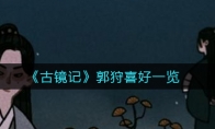 古镜记郭狩喜欢什么?《古镜记》游戏中郭狩送什么礼物会喜欢呢?今天小编就给大家介绍一下古镜记郭狩喜好一览,有需要的小伙伴不要错过了。 《古镜记》郭狩喜好一览小编给的龙井可以了,让他高兴是真难啊 这游戏,有的人送礼物他不要还不还你游戏介绍:古镜记是一款非常有趣的益智游戏,游戏采用传统艺术的皮影戏风格,搭配水墨风格的背景画面,为玩家创造了一个独特的古代社会。游戏里大量的故事等着你去解开,从一面古镜的角度,可以窥探未知的秘密,揭开层层谜题,才能到达彼岸,努力探索这是一个什么样的世,等待你的又是什么?以上就是《古镜记》郭狩喜好一览,更多游戏攻略请持续关注3DM手游网!