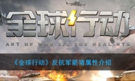 《全球行动》联盟军与反抗军之间中都有着不同的兵种,对于很多萌新小伙伴还不认识这些兵种,对于不了解的小伙伴,就来看看带来一些兵种属性技能吧。 《全球行动》反抗军箭猪属性介绍训练地点: 一级特种兵工厂单位标签: 战车,地空兼备,克制步兵,空军克星护甲类型: 中(II)移速: 较慢 武器: 全方位地对空导弹发射器特色: 机枪武器射程较远,高于大多数对地武器(除架起的美洲豹,猛犸,潜艇的导弹,急流,狙击手外)战略意义: 防空+辅助型战车,前期可以在有前排的情况下风筝步兵,中后期可以防空袭以上就是小编为大家带来《全球行动》反抗军箭猪属性介绍的内容,更多游戏资讯请关注3DM游戏网。