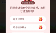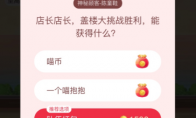 在天猫双11合伙人游戏中,喵币可以用来升级喵店,升级喵店后就可以领取红包奖励了!喵币还可以通过答题的方式来获得,那么下面小编就为大家来介绍一下“同事告诉我有个天降喵币,怎样才能遇到啊?”这道题目的正确答案。答题赢喵币答案: 盖楼大挑战胜利能获得什么? 每天的盖楼大挑战几点开启? 我的爱豆多好看你们店快找TA代言鸭! 【答题赢喵币答案汇总】同事告诉我有个天降喵币,怎样才能遇到啊? 答案:不停点收银台 喵铺升级方法:1、用户完成新手引导后,会获取第一家喵铺,用户可在互动主界面点击“升级”按钮来升级喵铺,当持有足够数量的喵币时,即可消耗一定数量喵币来升级喵铺。2、用户成功升级喵铺后,有机会获得待兑换红包、双11购物津贴、头像勋章等奖励,其中,可能获得的待兑换红包的时间段为2019年10月21日00:00:00——2