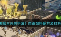 《黑暗与光明手游》是大家非常期待的一款魔幻沙盒新作,游戏中很多小伙伴想知道肉食饲料怎么做?下面是3DM小编就给大家带来了《黑暗与光明手游》肉食饲料配方及材料获取一览,感兴趣的小伙伴们一起来看看吧。 《黑暗与光明手游》肉食饲料配方及材料获取肉食饲料肉食材料的制作工具亨饪台及材料(熟肉、水珠、骨粉、油脂),开火做就行了 1、熟肉。 获取有两种方式,一种是生肉通过亨饪台制作成熟肉,另一种去血槌氏族里面的篝火里面偷。而生肉的的获取可以通过迷你世界生产,也可以通过狼采集尸体获得。这边建议生肉做,血槌氏族进去要花费部落钥匙,而且现在区人多,一般偷不到多少。2、生肉。 狼采集生肉需骑上去,一会就1000肉了3、水珠。 水珠比较简单,用水袋、空瓶子装水后分解获得,当然还有鹿采集,不过这个不怎么推荐来的太慢。 (主城有大水桶,这