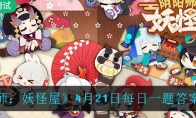 阴阳师妖怪屋的官方在微信公众号开设了每日一题栏目,玩家答对题目即可领取奖励,今天小编给大家带来了《阴阳师:妖怪屋》4月21日微信每日一题答案,感兴趣的小伙伴一起来看看吧,希望可以帮助到大家。《阴阳师:妖怪屋》4月21日每日一题答案一览一、题目详情 那只小妖怪会武术切磋?A、莹草B、椒图C、樱花妖D、酒吞童子答案:D、酒吞童子(输入D即可) 二、答题方式 1、前往“阴阳师妖怪屋”微信公众号2、点击抱走周边3、选择每日一题,输入答案领取奖励以上就是小编整理的关于《阴阳师:妖怪屋》4月21日每日一题答案一览的全部内容,更多游戏攻略请持续关注3DM手游网!