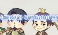 《成语宫廷记》496-500关怎么过,答案是什么呢?成语宫廷记是一款成语的益智解谜过关类小游戏,下载最新版本的微信—发现—小程序—搜索成语宫廷记就可以玩了。下面是3DM小编给大家带来的成语宫廷记第496-500关答案通关攻略图,想要快速通关的小伙伴速来围观吧!>>>>小编推荐:《成语宫廷记》全关卡答案大全 成语宫廷记第496-500关答案496关 通关答案:1、英雄辈出2、权宜之策3、万事亨通4、万紫千红5、便宜行事6、出谋划策7、通力合作8、作如是观9、触目皆是10、目不忍视11、惨不忍睹497关 通关答案:1、积土成山2、积重难返3、难分难解4、一哄而散5、一抔黄土6、榜上无名7、名山胜水8、山水相连9、连日连夜10、喜不自胜11、秉烛夜游498关 通关答案:1、反戈一