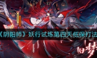 阴阳师妖行试炼第四天低保怎么拿?《阴阳师》游戏中妖行试炼活动已经开启了,那么第四天的阵容要怎样搭配呢?今天小编就给大家介绍一下阴阳师妖行试炼第四天低保打法,有需要的小伙伴不要错过了。相关推荐:《阴阳师》妖行试炼2021打法攻略 《阴阳师》妖行试炼第四天低保打法一、阵容推荐 今天的难度相对前两天较高一些,这里选择三山兔+食发鬼的打法。御魂阵容: 3兔1食发鬼,全部招财猫,式神1级觉醒即可;主角紧那罗,针姬超星,堆攻击;神乐带疾风标记紧那罗,红标金鱼姬;配速可以参考如下,我到打完只有金鱼姬拉过一次条,很稳。 二、突变点法 注意选50回合,突变等级20. 以上就是《阴阳师》妖行试炼第四天低保打法,更多游戏攻略请持续关注3DM手游网!