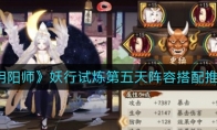 阴阳师妖行试炼第五天阵容怎么搭配?《阴阳师》游戏中妖行试炼活动是比较高难度的,那么阵容应该怎样搭配呢?今天小编就给大家介绍一下妖行试炼第五天阵容搭配推荐,有需要的小伙伴不要错过了。相关推荐:《阴阳师》妖行试炼2021打法攻略 《阴阳师》妖行试炼第五天阵容搭配推荐一、配速235速+1号日女天邪鬼青>230速+2号日女天邪鬼青>180速+1号针姬天邪鬼青>高攻超星针姬小天狗>神乐疾风>115速+2号针姬天邪鬼青。二、打法开局鬼青普攻推对面铁鼠和雪女,然后赌对面大天狗普攻神乐(如果不是普攻神乐就直接翻车重来)。小天狗开大打对面大天狗,神乐疾风再打一次,1号高速针姬鬼青普攻对面大天狗,等2号尾速针姬鬼青回合再普攻打si对面大天狗,之后看行动条推对面小怪,小天狗打血量多的小怪就行了。 以上就