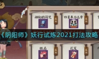 阴阳师妖行试炼2021怎么打?《阴阳师》游戏中在更新后开启了妖行试炼2021的活动,那么这次活动玩家们应该怎样上分呢?今天小编就给大家介绍一下阴阳师妖行试炼2021打法攻略,有需要的小伙伴不要错过了。相关推荐:《阴阳师》妖行试炼2021玩法攻略 《阴阳师》妖行试炼2021打法攻略《阴阳师》妖行试炼活动已经在1月20日开启了,那么就让我们一起来了解一下其中的具体打法吧!《阴阳师》妖行试炼2021玩法攻略1月20日妖行试炼打法攻略 第二天阵容推荐 第三天通关攻略 第四天低保打法 第五天阵容搭配推荐 第六天低保打法攻略 第七天冲分阵容推荐 以上就是《阴阳师》妖行试炼2021打法攻略,更多游戏攻略请持续关注3DM手游网!