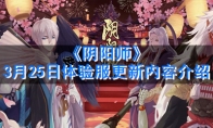 《阴阳师》3月25日体验服更新了什么内容呢,不少玩家都不不太清楚,想知道今日的更新有哪些改动,接下来就让3DM小编给大家带来《阴阳师》3月25日体验服更新内容介绍。《阴阳师》3月25日体验服更新内容介绍重要更新1.式神援助系统上线!在进行单人非自动战斗中,遇到危险情况时,有一定几率触发亲友的式神进行援助。援助式神会出现在召唤位,施放完技能后消失。部分援助式神使用的技能和原技能有所不同,援助技能不会触发敌方的御魂和被动。式神援助开放场合:探索副本、剧情关卡、御魂副本、觉醒副本、妖气封印副本、秘闻副本、结界突破和道馆战斗。2.鬼切手办、源赖光手办上架周边屋*大江山之章系列鬼切手办'源氏重宝'、源赖光手办'荣光之战'上架周边屋!*3月25日维护后-4月28日期间,购买享首发优惠价。购买手办组合赠送'契血铭心'徽章礼盒
