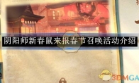 阴阳师新春鼠来报怎么玩?这是一款非常好玩的游戏,该游戏里还有很多活动等着所有游戏玩家去参与的,那么是不是还有很多游戏玩家到现在还不知道新春鼠来报春节召唤活动怎么玩的,接下来小编就为大家带来阴阳师新春鼠来报怎么玩的详细介绍,希望小编的分享可以帮助到屏幕前的游戏玩家,感兴趣的玩家一定不要错过哦。 阴阳师新春鼠来报怎么玩?☆春节召唤活动即将开启☆新春佳节,献礼连连,「新春鼠来报」春节活动即将开始!寮办给大人送上新年的第一份惊喜——推进活动进度最多可获得累计70抽的奖励!△活动时间:1月8日维护后-1月14日23:59 △参与条件:※等级≥15级的大人,可点击庭院右侧小纸人或地藏像,进入活动界面。 △玩法介绍:※大人完成每日花合战任务,获得「福」进行捐赠,将会掉落金币、八岐大蛇鳞片等随机奖励。累计提交5个「福」可额外获