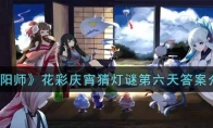 《阴阳师》游戏中的花彩庆宵猜灯谜是新上线的活动玩法,相信还有很多小伙伴不是很清楚花彩庆宵猜灯谜第七天答案是什么。下面小编给大家带来了《阴阳师》花彩庆宵猜灯谜第七天答案介绍,感兴趣的小伙伴们一起来看看吧。 花彩庆宵猜灯谜第七天答案介绍【答案介绍】 问题:七人人头顶草。(打一个字)答案:花(这个答案还是比较鲜明意见的,下面一个“人”和七”,上面一个草字头组成“花”。注意:答题没有次数限制,答错依然可以继续回答。 以上就是小编整理的关于《阴阳师》花彩庆宵猜灯谜第七天答案介绍的全部内容,更多游戏攻略请持续关注3DM手游网!