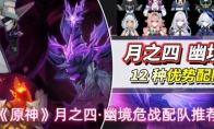 原神幽境危战怎么配队,此次难度重点集中在第1、2关,螃蟹偏向于走机制,挂水足够比较好处理。接下来为大家带来玩家“冻梨游研社”分享的几种不错的队伍阵容搭配。《原神》月之四·幽境危战配队推荐:一、深黯魇语之主·袭掠锋刃【推荐配队】菲林斯/哥伦比娅/伊涅芙(3选2)+菲谢尔+砂糖;奈芙尔+菈乌玛+哥伦比娅/行秋/妮露+雅珂达/纳西妲/白术/瑶瑶;兹白+叶洛亚+五郎/钟离+哥伦比娅/行秋;玛薇卡+万叶+班尼特+希诺宁;那维莱特+芙宁娜+万叶+希诺宁;二、历经百战的火刃突击队员·决死武装【推荐配队】菲林斯/哥伦比娅/伊涅芙(3选2)+菲谢尔+砂糖/雅珂达;瓦雷莎+伊安珊+夏沃蕾+玛薇卡/杜林;那维莱特+芙宁娜+伊涅芙+希诺宁;玛薇卡+欧洛伦+伊安珊+夏沃蕾;丝柯克+芙宁娜+爱可菲+莫娜。三、铁甲熔火帝皇·敕命远征【推荐队