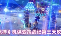 原神机谋变策战记第3天怎么过,5.6版本开启了“机谋变策战记” 主题配队战斗挑战,第三天的主题为爱可菲。下面就为大家带来《原神》机谋变策战记第三天攻略,感兴趣的玩家们一起来看看吧。第1天第2天第3天第4天第5天第6天《原神》机谋变策战记第三天攻略:第三关-封冻周天的彻寒挑战目标积分达到1000/2000/4000/8000/16000(达到4000分即可拿到所有原石奖励)敌人详情【上半场】压制特化型机关·芒、野伏·阵刀番、大型碎石隙境原体、黑蛇骑士·斩风之剑【下半场】幻形豕兽·水、镀金旅团·炽沙叙事人、黑深渊法师、圣骸角鳄、嗜岩·兽境猎犬推荐元素【上半场】冰、水【下半场】冰、水阵容推荐全角色阵容①【上半场】爱可菲、芙宁娜、那维莱特、茜特菈莉/甘雨【下半场】爱可菲、莱欧斯利、申鹤、夜兰全角色阵容②【上半场】爱可菲