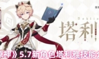 原神塔利雅有什么技能,5.7版本更新了蒙德新4星角色塔利雅,有玩家对这个角色的技能信息还不太清楚,那么塔利雅有什么技能呢?下面就为大家带来塔利雅技能介绍,希望对大家有所帮助。《原神》5.7新角色塔利雅技能介绍:一、塔利雅四星、水元素、单手剑、蒙德二、技能介绍普攻塔利雅是一位使用单手剑的水元素辅助角色,普攻可以使用单手剑进行多段攻击。元素战技施放元素战技,塔利雅可以在指定位置布下【雾雨秘迹】,敌人接触后会爆炸,受到水元素范围伤害,如果是附近的队友接触到的话,会被高高弹起,可以借此避开敌人的攻击,调整作战角度。元素爆发塔利雅可以过元素爆发为队友提供水元素护盾,在释放元素爆发后的一段时间内,自己角色普通攻击命中敌人或触发冻结反应,将获得「祝颂」,该护盾因伤害破碎时,可以消耗一层「祝颂」重新唤出护盾,持续为队友提供保护