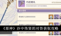 原神沙中伟贤的对答怎么获得?相信有不少小伙伴都知道沙中伟贤的问答这个武器,但是这个武器应该怎么获得呢,这是很多小伙伴还不太清楚的,所以今天小编就为大家带来了沙中伟贤的问答获取方法,那还不清楚的小伙伴快来和小编一起看看吧。《原神》沙中伟贤的对答获取攻略答:在本次活动“升炼研巧万策金”之中营业额的收入达到50000即可兑换。详细介绍:1、首先需要进行本次升炼研巧万策金的活动,通过完成经营的挑战,打开活动中的巧匠赠礼。2、当持续的营业收入达到50000之后就可以获得沙中伟贤的对答这把武器。3、当营业收入达到100000、200000、500000和1000000就可以就可以获得用来精炼这把武器的材料了。4、这把武器可以在进行治疗时恢复8点能量,角色处于后台也可以触发这个效果。以上就是3DM小编整理带来的原神沙中伟贤的