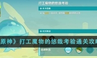 原神作为一个以开放世界为题材的RPG游戏,二次元的画风深受大家的喜爱,而打工魔物的悠哉考验是小小灵蕈大幻戏中的一关,那么原神打工魔物的悠哉考验怎么过?下面就由小编给大家带来打工魔物的悠哉考验通关攻略,感兴趣的小伙伴一起来看看吧。 《原神》打工魔物的悠哉考验通关攻略一览:【打工魔物的悠哉考验】 说明:第一个关卡其实就是试玩教学关卡,让玩家了解玩法,熟悉操控蕈兽如何战斗数字1-4:可以选择单个蕈兽进行操控,鼠标点击到任意位置,蕈兽就会立即行动数字5:全选场上所有蕈兽,然后可以进行移动操作字母E:释放蕈兽技能注意:如图所示,像剑鬼或其他魔物会释放这种范围大招和技能时,我们要及时全选蕈兽躲避技能,移动到安全区域,待魔物释放完技能我们再进行输出,要随机应变。 以上就是3DM小编整理带来的原神打工魔物的悠哉考验怎么过以及打