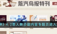 原神4.2罪人舞步旋内容专题页怎么进入?这个网页活动有不少玩家都不知道在哪里,那么还没参与的话可以先来看看原神4.2罪人舞步旋内容专题页的活动攻略吧!希望可以帮助到大家。《原神》4.2罪人舞步旋内容专题页进入方法一、位置介绍1、点击进入:网页链接2、玩家点击链接即可跳转至内容专题页。二、内容介绍1、玩家进入专题页后点击派蒙菜单,之后需要点击版本热点即可。2、在4.2罪人舞步旋内容专题页中玩家可以看到新角色芙宁娜以及夏洛蒂。3、还可以查询全新武器属性以及技能等,在专题页中还可看到版本新活动。以上就是3DM小编整理带来的原神4.2罪人舞步旋内容专题页进入方法,更多相关游戏攻略,请关注3DM手游网!