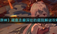 《原神》游戏中3.0版本调查走廊深处的庭院任务已经开启,玩家们找到一个角度,把庭院里树边上两个半块的石头拼在一起,组成一个图形,之后根据有光亮处提示,站在光亮处就可以了。那么今天小编就给大家介绍一下原神调查走廊深处的庭院解谜攻略,有需要的小伙伴不要错过了。 《原神》调查走廊深处的庭院解谜攻略 1.找到一个角度,把庭院里树边上两个半块的石头拼在一起,组成一个图形,具体如下图: 2.这个谜题的解法就跟望舒客栈下面的石头一样,视角对准能看全就可以,而且有光亮处提示,站在光亮处就可以了。3.任务流程:- 调查另一侧的走廊- 前往上层平台- 击败深渊使徒- 与深渊使徒对峙- 救醒海芭夏- 在篝火处制作饭菜- 将做好的便当带给海芭夏- 与海芭夏交谈- 返回化城郭- 与柯莱道别以上就是《原神》调查走廊深处的庭院解谜攻略,更多