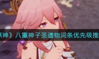 原神游戏中的八重神子是一名新上线的角色,相信还有很多小伙伴不是很清楚八重神子武器圣遗物怎么选,下面小编就给大家带来《原神》八重神子武器圣遗物优先级推荐,感兴趣的小伙伴一起来看看吧,希望能帮助到你们。 《原神》八重神子武器圣遗物优先级推荐武器选择:五星武器推介:神乐之真意 天空之卷;四星武器推介:流浪乐章 匣里日月 黑岩绯玉若选择站场输出(不建议):五星武器推介:神乐之真意 四风原典;四星武器推介:匣里日月 黑岩绯玉圣遗物选择:词条情况>2+2套装。平均意义上而言:推介在2角斗/2追忆、2如雷、2宗室中灵活选择。命座推荐:1命、2命、6命极大提升辅助推荐:枫原万叶、九条裟罗 以上就是小编给大家带来的《原神》八重神子武器圣遗物优先级推荐,更多游戏攻略请持续关注3DM手游网!