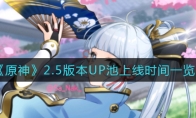 《原神》游戏中2.5版本UP池即将在2月16日11点左右正式开服,小伙伴们是不是期待已久了。那么今天小编就给大家介绍一下原神2.5版本UP池上线时间一览,有需要的小伙伴不要错过了。 《原神》2.5版本UP池上线时间一览1.更新时间 2022/02/16 06:00 开始,预计5个小时完成。也就是11点左右正式开服。2.UP池开放时间 「华紫樱绯」活动祈愿 ●活动期间,限定五星角色「浮世笑百姿·八重神子(雷)」的祈愿获取概率将大幅提升!●活动期间,四星角色「断罪皇女!!·菲谢尔(雷)」「猫尾特调·迪奥娜(冰)」「渡来介者·托马(火)」的祈愿获取概率将大幅提升! ※ 以上角色中,限定角色不会进入「奔行世间」常驻祈愿。※ 本祈愿属于「角色活动祈愿」,「角色活动祈愿」和「角色活动祈愿-2」的祈愿次数保底完全共享,会一直