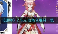 《原神》游戏中2.5版本即将更新,很多玩家想知道up池会有哪些新角色,那么今天小编就给大家介绍一下原神2.5up池角色爆料一览,有需要的小伙伴不要错过了。 《原神》2.5up池角色爆料一览2.5:全璃月角色 魈神鹤+云堇(这三个角色全部用枪) 2.5:最强女角色的王位回归 上半场雷神复刻下半场大狐狸八重神子1、有爆料称雷电将军将会在2.5版本中进行复刻,与他一同复刻的还有万叶,这两个角色为上卡池;而八重神子和久岐忍则在下卡池,届时雷电将军将会是周本的boss,而万叶将会陪同旅行者完成版本剧情,再次挑战雷电将军。(隐约记得雷电将军才上线不久的,要真复刻的话,争议可不小) 2、原神中的反派“散兵”也将会在2.5版本的剧情中再次出现,这也不是毫无征兆的,在游戏的最新的圣遗物“华馆梦醒形骸记”的描述中,已经有透露了他的